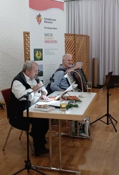 Zum Abschluss des Wanderjahrs 2022 lud die Ortsgruppe Aalen des Schwäbischen Albvereins zu einem Mundartabend ein. „Endlich!“ so freute sich Vorsitzende Ute Hommel, dürfe sie nach zwei Jahren coronabedingter Pause wieder zu einem Abend für das Herz und die Seele begrüßen. Siegried Wiedemann, bekennender Liebhaber der schwäbischen Sprache gestaltete den Abend mit Gedichten, Liedern und Witzen. Begleitet wurde er von Günter Fröhlich am Akkordeon.